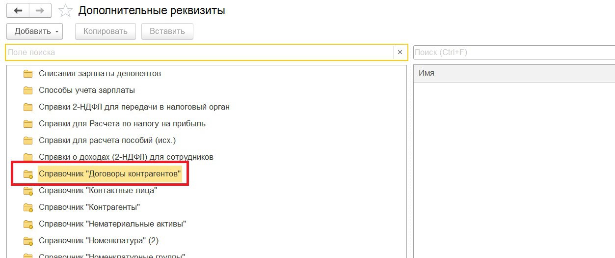 2.Найдем нужный объект - «Справочник «Договоры контрагентов».