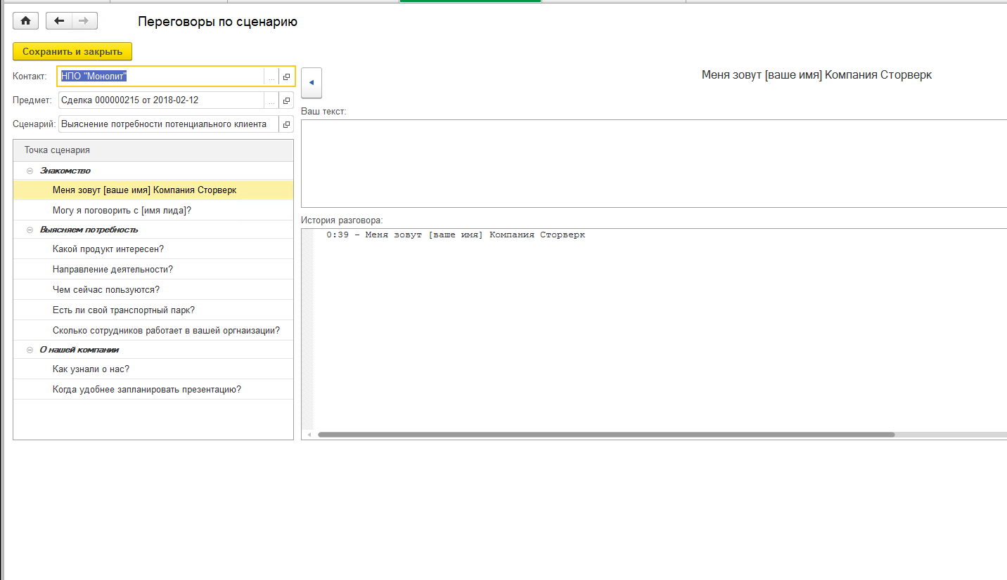 Прямо из программы вы можете совершать звонки. При этом, сразу высвечивается имя клиента и все имеющиеся по нему данные. Также, отображается скрипт разговора, который позволяет системе автоматически выстроить продуктивный разговор с клиентом.