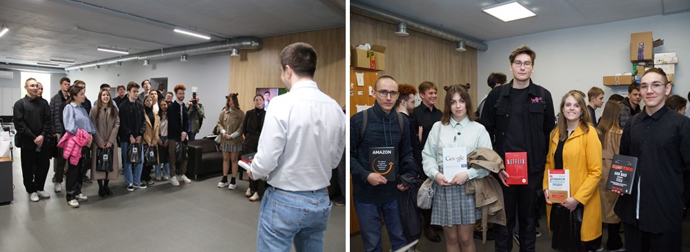Для экскурсии по нашей компании руководители отделов и директора придумали интерактивы для студентов. Самые активные получили призы — сертификаты на обучение 1С и полезные книги.