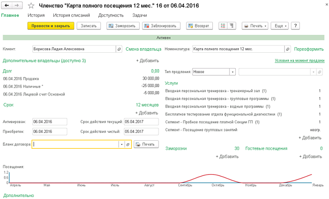 Описание программы «1C:Предприятие 8. Фитнес клуб»