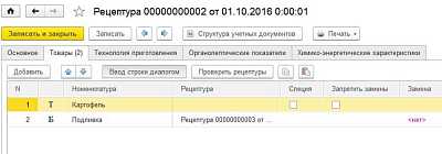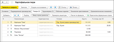 *Например, в рецептуре для повара указываем норму расхода воды, но при отражении производства со склада она не списывается.