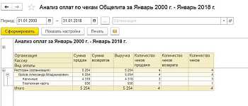 - Необходимая для оценки деятельности аналитическая отчетность с детализацией до чека, а также регламентированная отчетность и отраслевые специальные печатные формы "ОП".