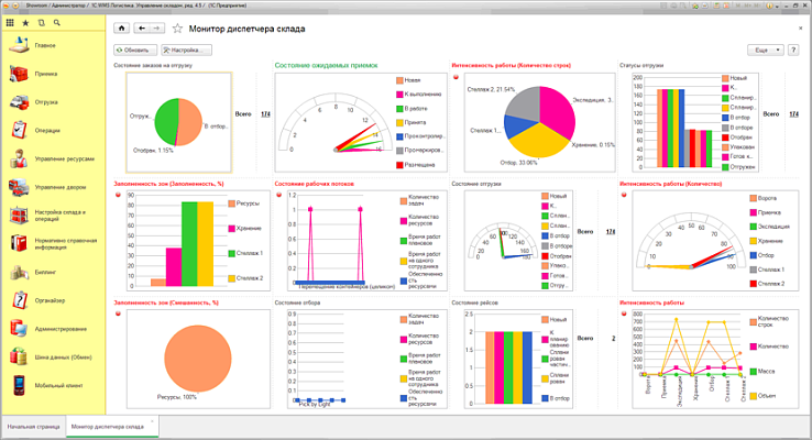 «1С: WMS Логистика. Управление складом 4» ориентирована на работу в режиме высоких и очень высоких нагрузок. Мощность в сочетании с быстродействием позволяют этой системе оперативно и без сбоев обрабатывать все множество задач интенсивного склада.