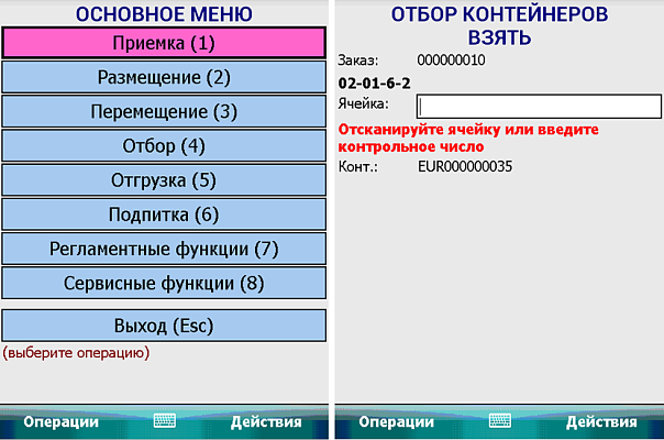 Задачи создаются автоматически по расписаниям или событиям системы и обрабатываются при помощи радиотерминалов сбора данных, подключенных к системе. В исключительных случаях задачи на исполнение складской операции могут быть созданы Диспетчером системы вручную и переданы для выполнения на терминал или по «бумажной» технологии, которая может быть использована в качестве резервной технологии.