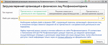- Загрузка в программу перечней Росфинмониторинга: