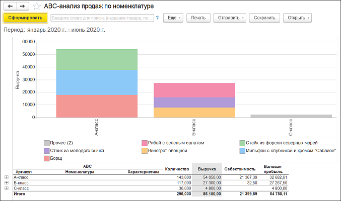 Номенклатурный справочник, разработанный на управляемых формах, отражает всю отраслевую информацию по товарам, материалам, полуфабрикатам и блюдам. В нем задаются такие основные параметры, как срок годности, остатки на складах, информация о розничных и оптовых ценах, а также подгружается динамика продаж.