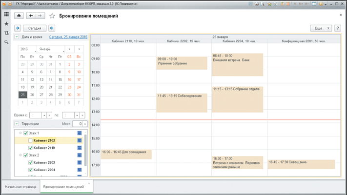 Организация мероприятий: вы можете назначить мероприятие, пригласить на него участников, забронировать помещение, составить программу. А по итогам проведения мероприятия, есть возможность создать протокол собрания и раздать поручения сотрудникам.