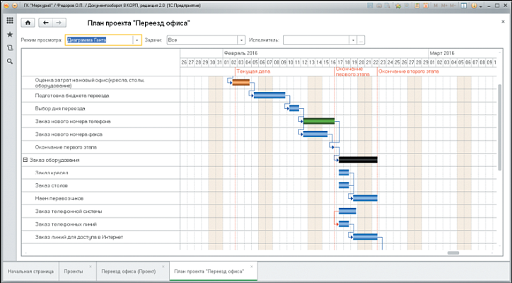 Работа в проектах: программа позволяет вести всю документацию, в разрезе проектов, реализуемых в компании. В проект можно пригласить ограниченный круг участников, которые могут в рамках проекта получать задачи и видеть всю документацию по проекту. Есть возможность вести учет по контрольным точкам.