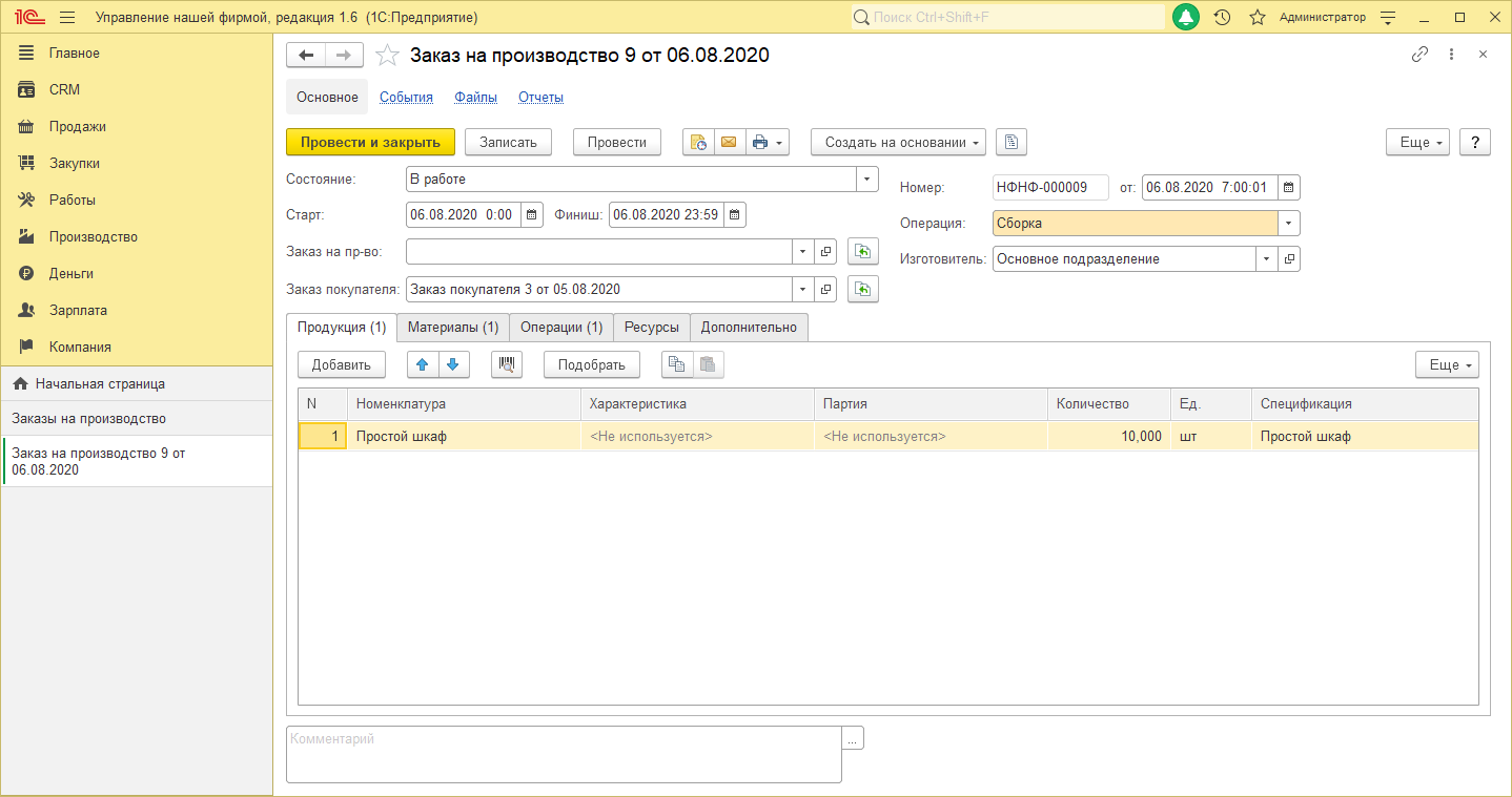 Производство в 1С:УНФ на самом деле открывает достаточно много возможностей. И позволяет настроить программу под конкретные нужды предприятия.