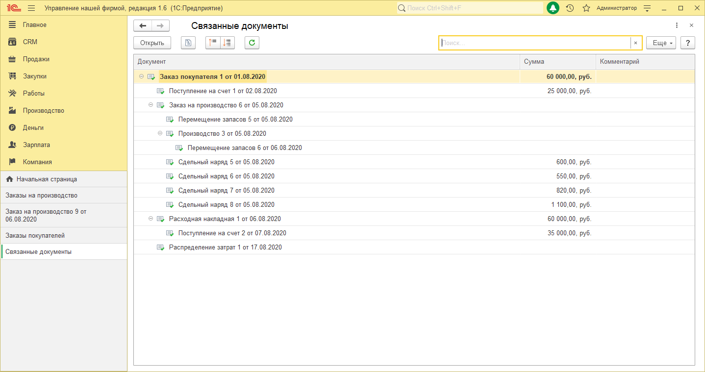 Реализована возможность отслеживать цепочку между продажей и производством:
