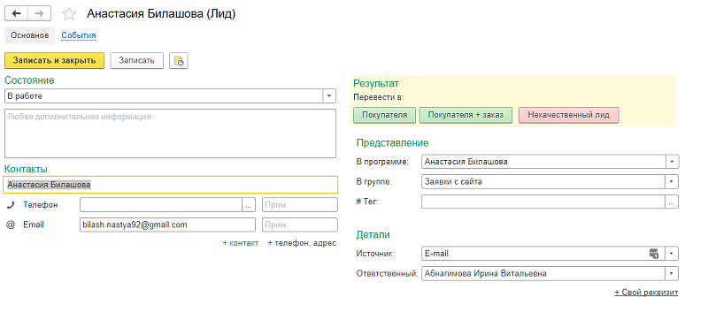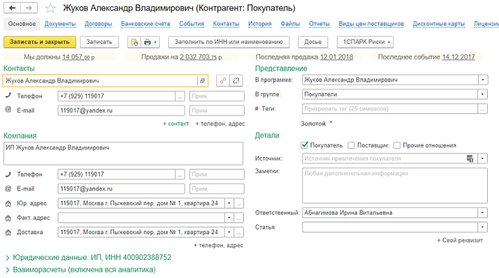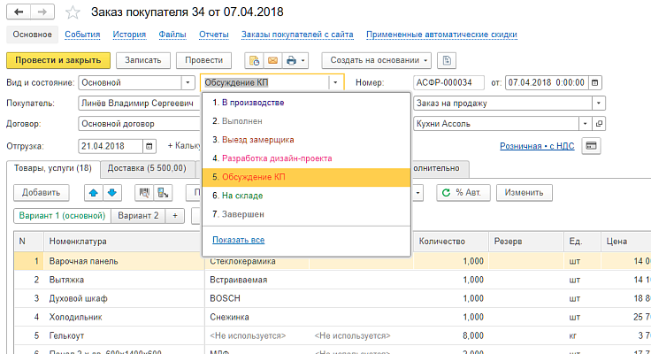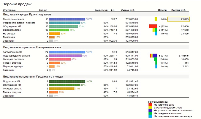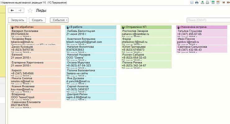 Маркетинг и продажи. Реализована возможность выставления счетов контрагентам, а также построения воронок продаж, по лидам, опираясь на заказы или заказы-наряды.