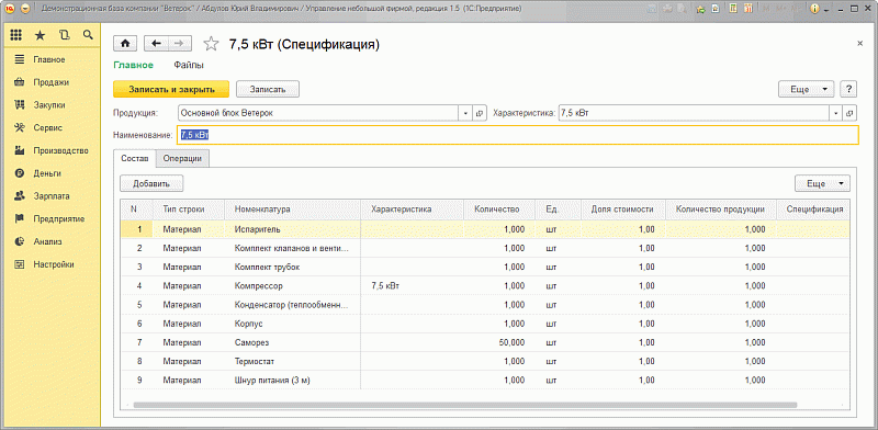 Помимо этого в 1С:УНФ упростили учет на позаказном производстве с помощью параметрических спецификаций. Параметрические (они же Динамические) спецификации позволяют на основе базовой спецификации и требований клиента автоматически создавать индивидуальную спецификацию под конкретный заказ.