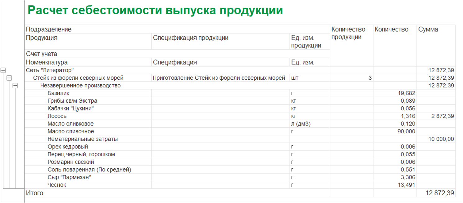 Отчет по себестоимости позволяет наиболее точно рассчитать себестоимость до выпуска продукции, исходя из реальных остатков и партий на складах.