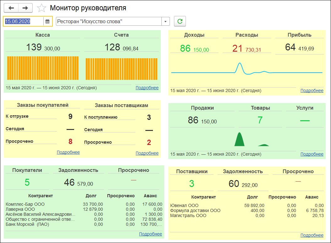 Анализ продаж и списаний – получить общие показатели деятельности с учетом продаж и прочих операций.